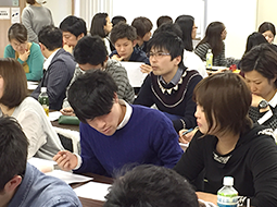 本社で、ゆずりはの運動の目的や安全管理等、基本的な知識をテキストやロールプレイングを用いて体系的に学びます。